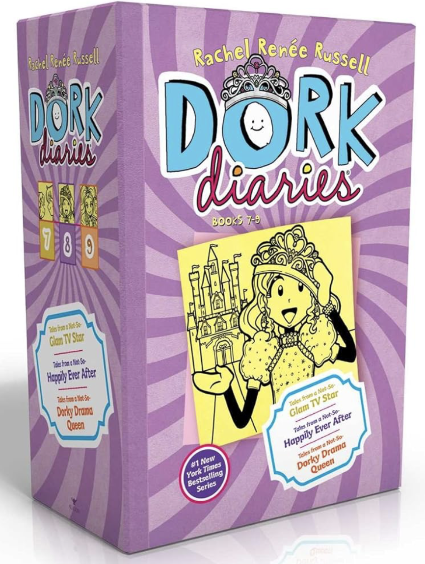 This boxed set includes Dork Diaries 7: Tales from a Not-So-Glam TV Star, Dork Diaries 8: Tales from a Not-So-Happily Ever After, and Dork Diaries 9: Tales from a Not-So-Dorky Drama Queen.